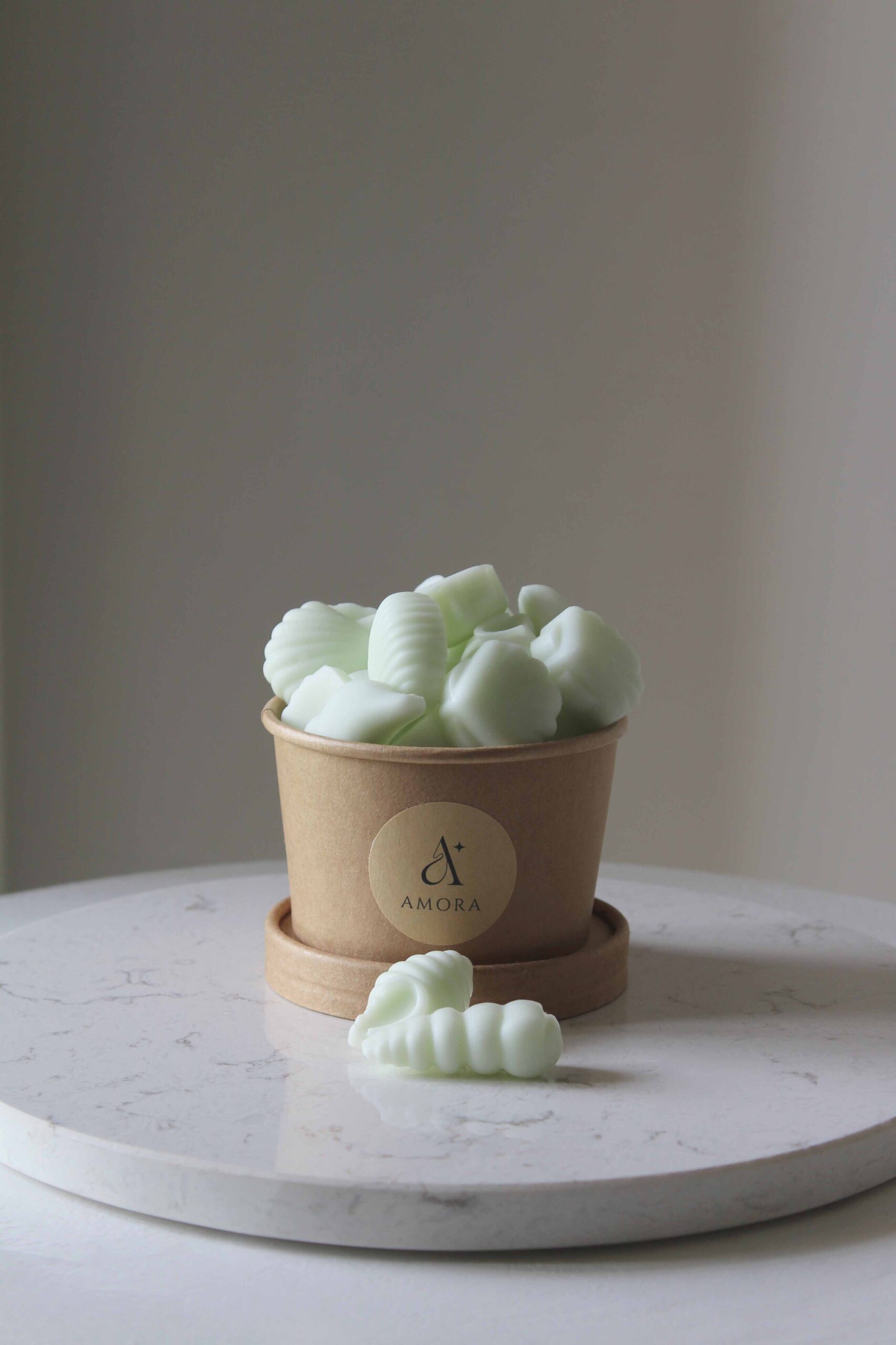 Crafted in a seashell shape, it’s a charming little piece of the ocean—elegant to display, unforgettable to experience. The rare touch of ambergris adds depth, sophistication, and a truly high-end character, making this melt unlike any other.