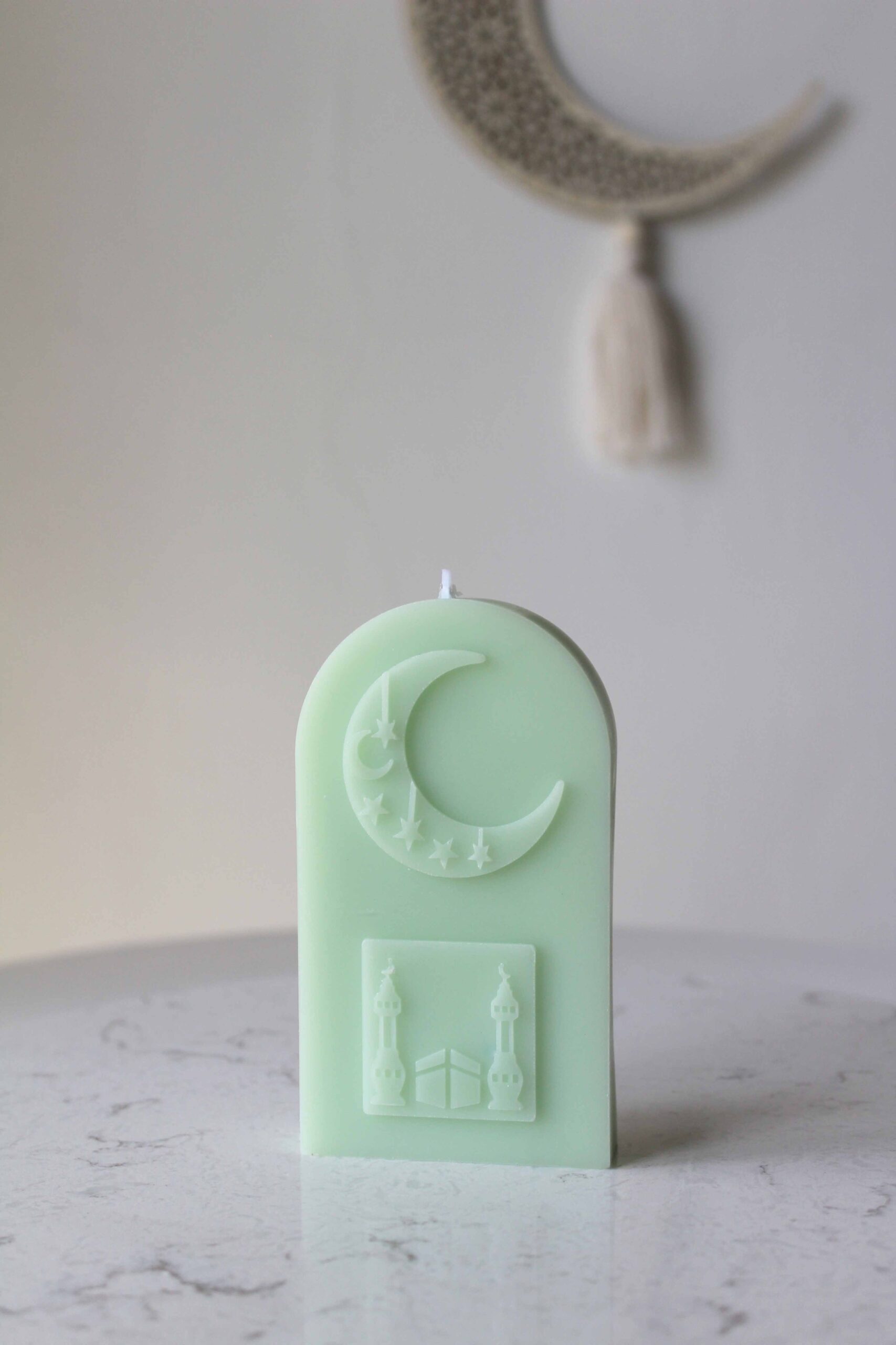 A sculptural candle inspired by the serenity of sacred nights beneath a crescent sky.