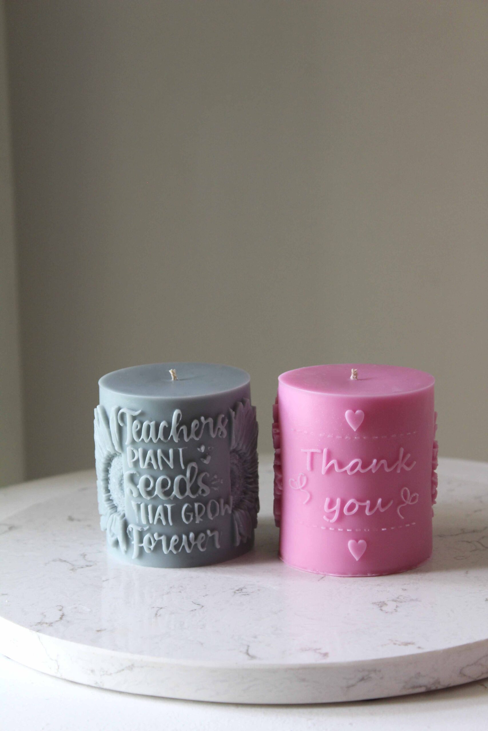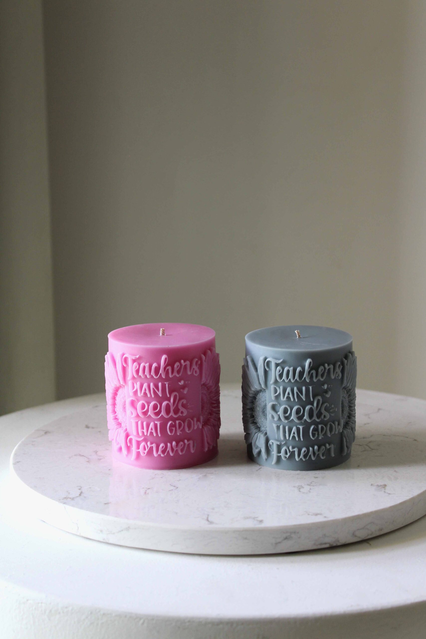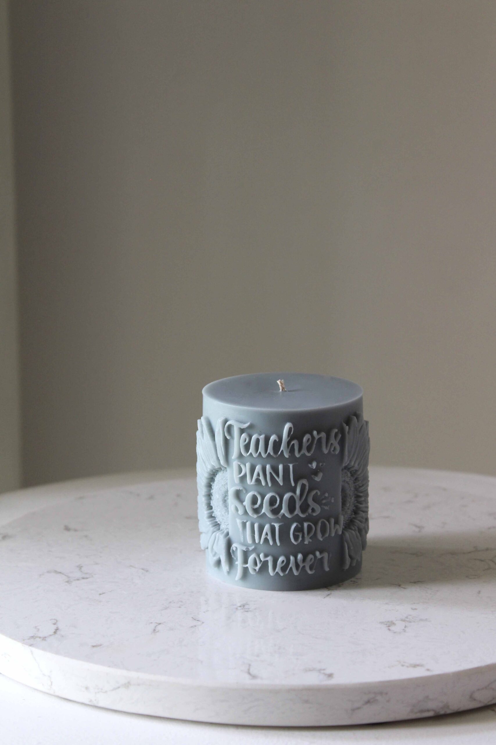 This intricately sculpted candle features blooming sunflowers — symbols of warmth, knowledge, and the light teachers bring into our lives.